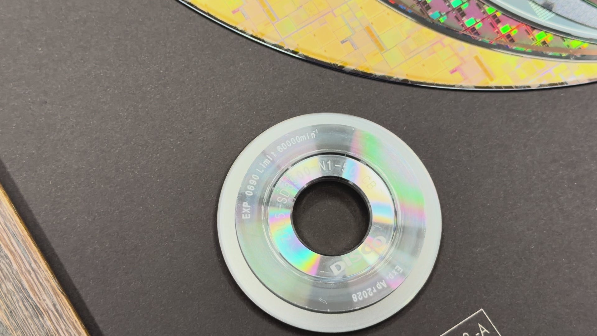 This one of a kind display contains a rare 100mm, 125mm, 200mm and 300 mm finished uncut silicon Wafers. The display shows the evolution of wafers from the 1970' until today.