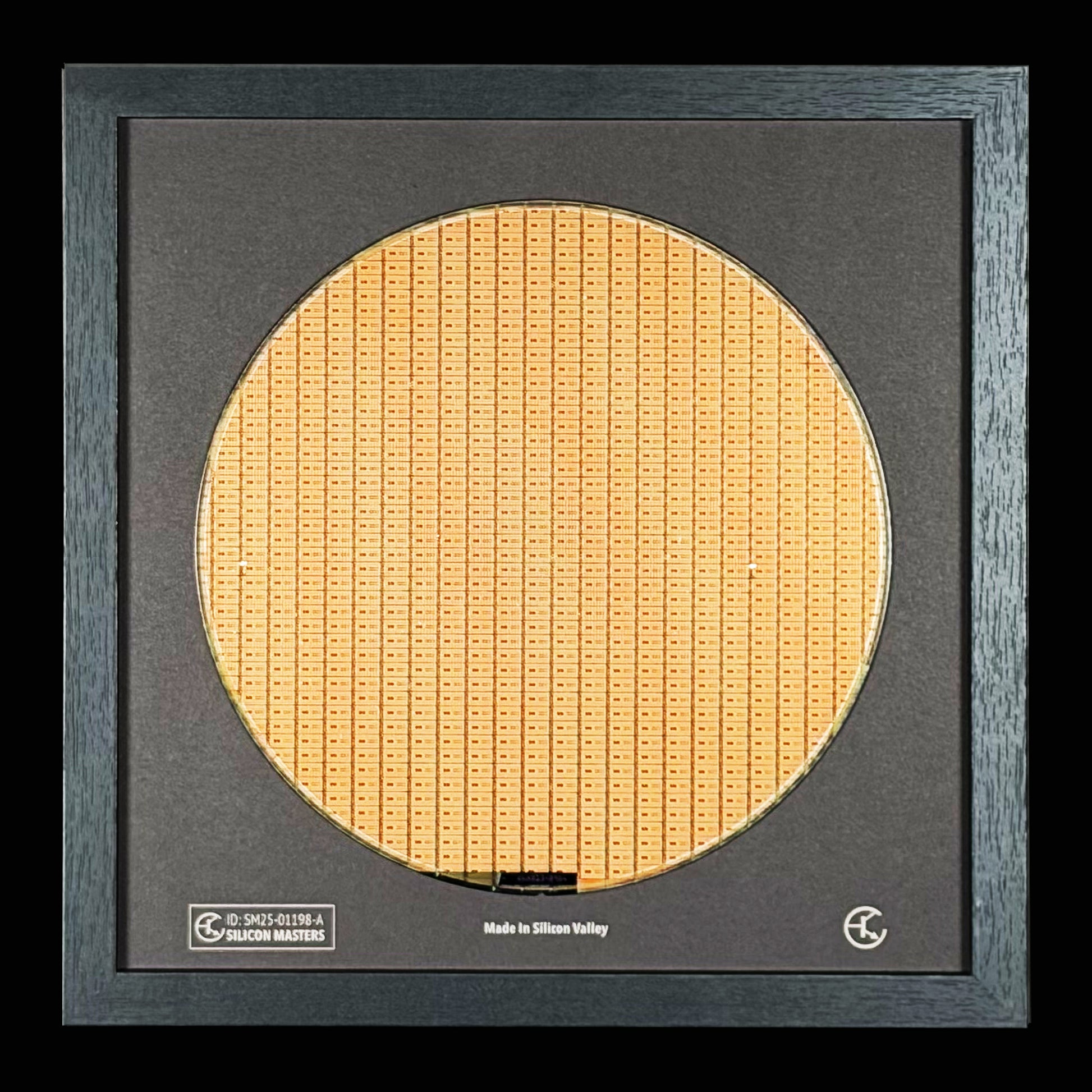 Each framed display contains a unique wafer and we do not specify the chip type or exact node size. The frame comes with real glass to protect the wafer.