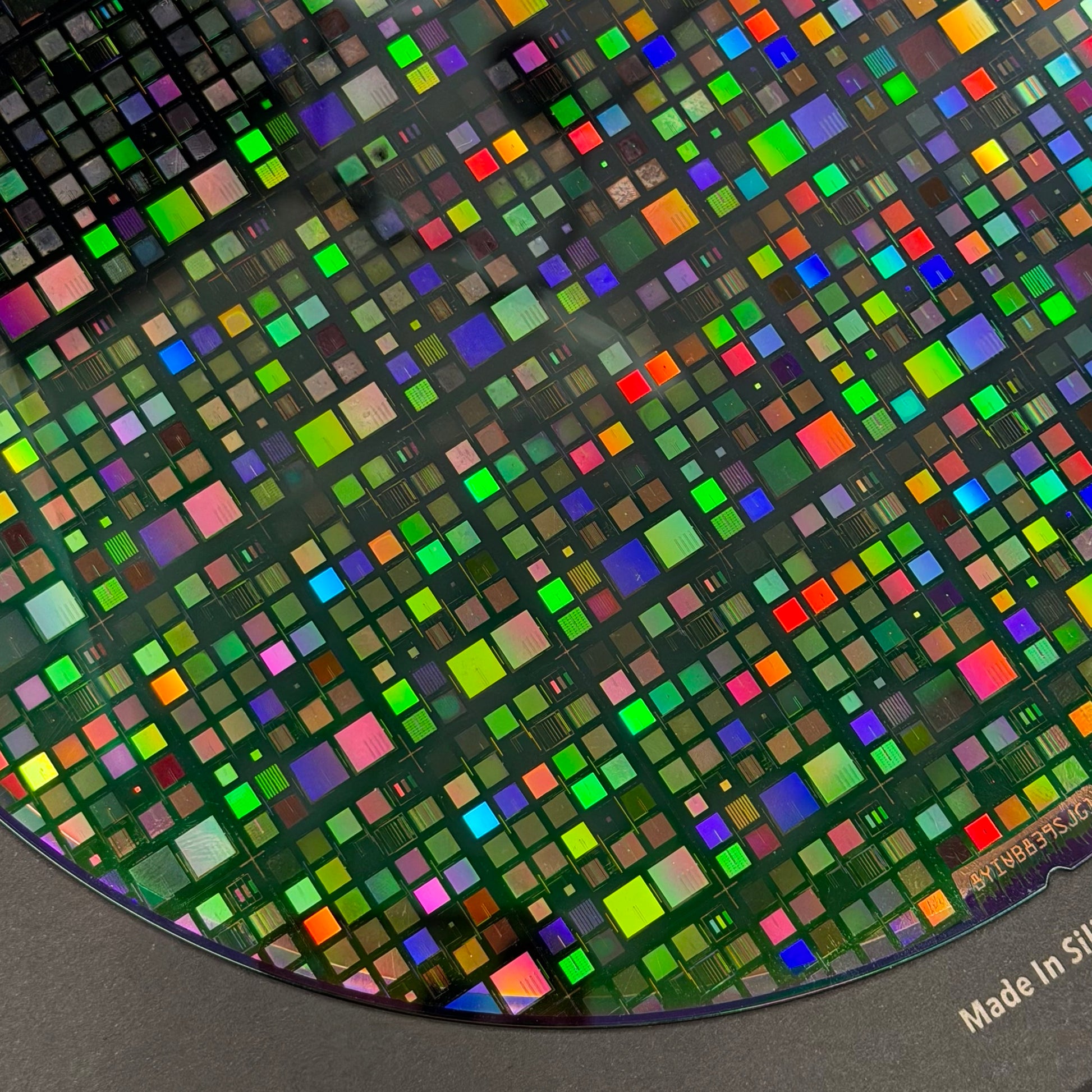 Framed 200mm Silicon Wafer: Multi Colored, Handmade in Silicon Valley