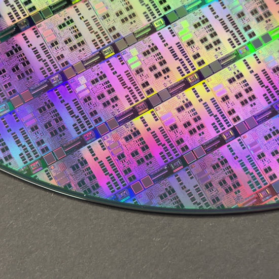 Each framed display contains a unique wafer and we do not specify the chip type or exact node size. The frame comes with real glass to protect the wafer.