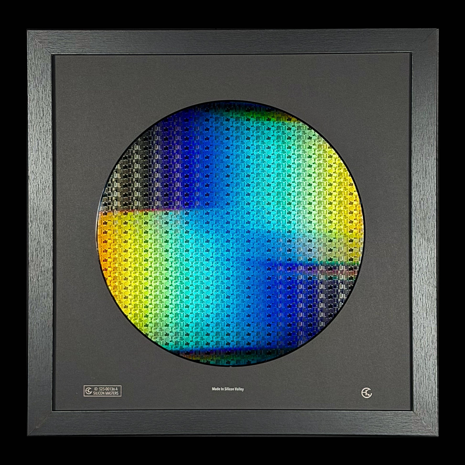 Each framed display contains a unique wafer and we do not specify the chip type or exact node size. The wafer displayed in the photos is the wafer you will get. All photos and videos are from this wafer.