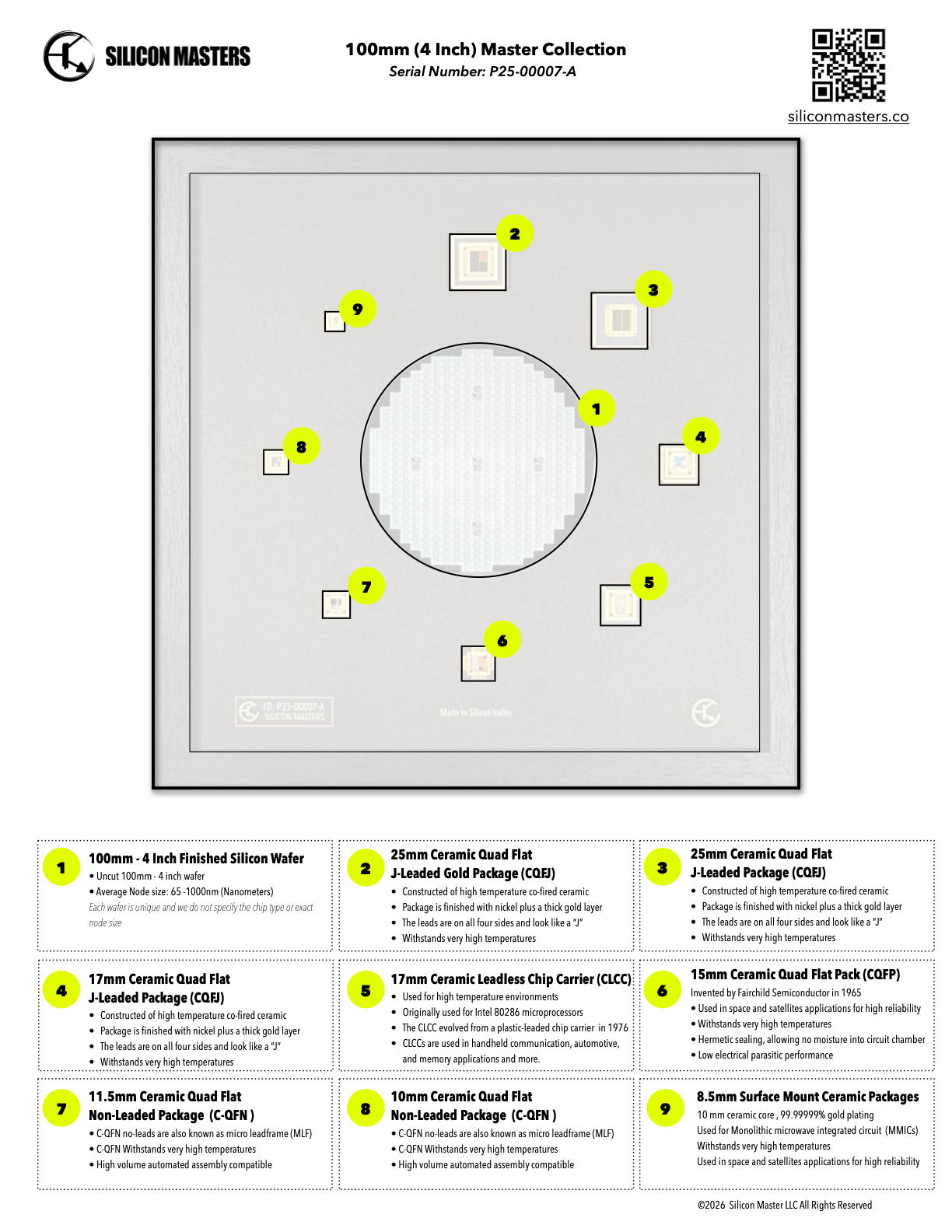Framed Silicon Wafer: 100mm Master Collection with Gold-Plated Chip packages