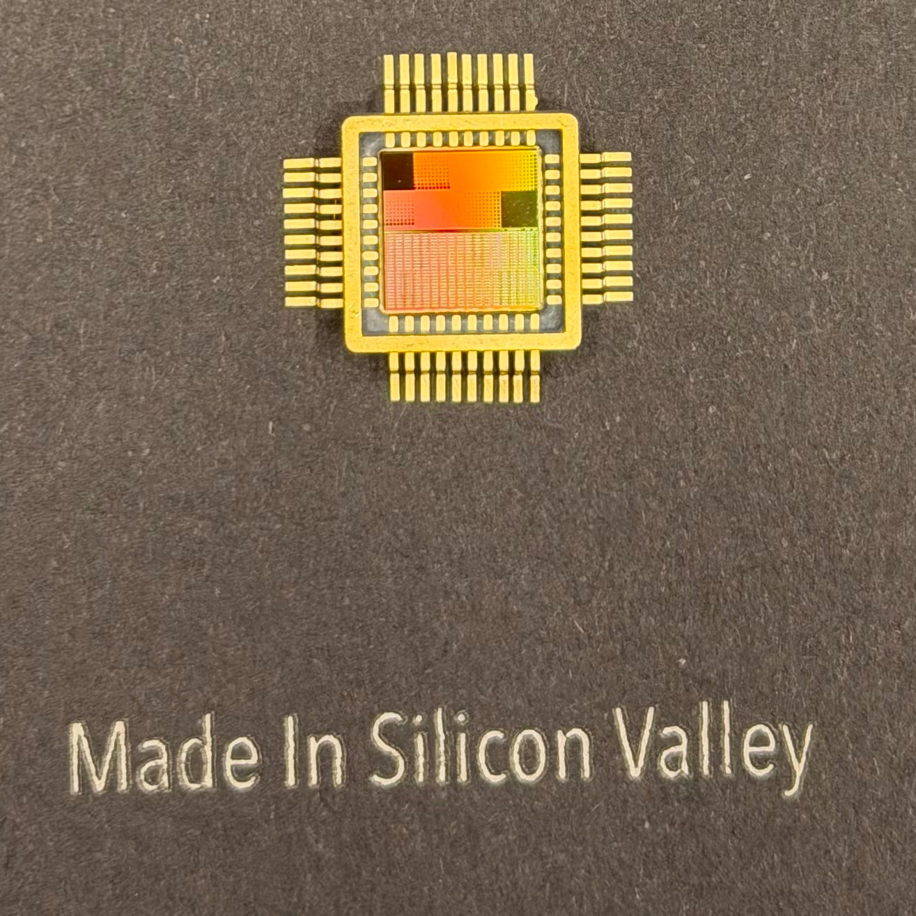 Each framed display contains a unique wafer and we do not specify the chip type or exact node size.